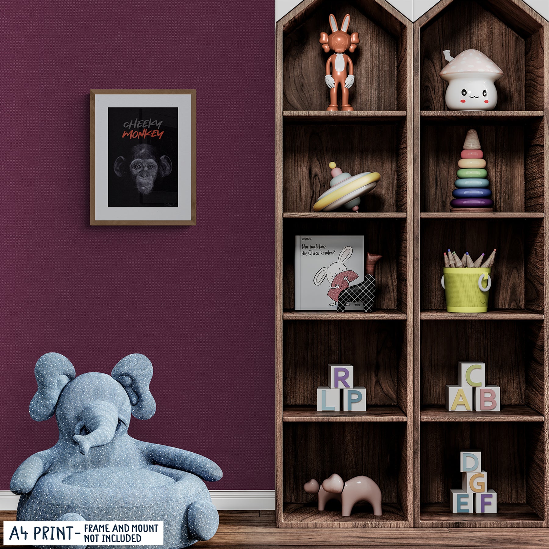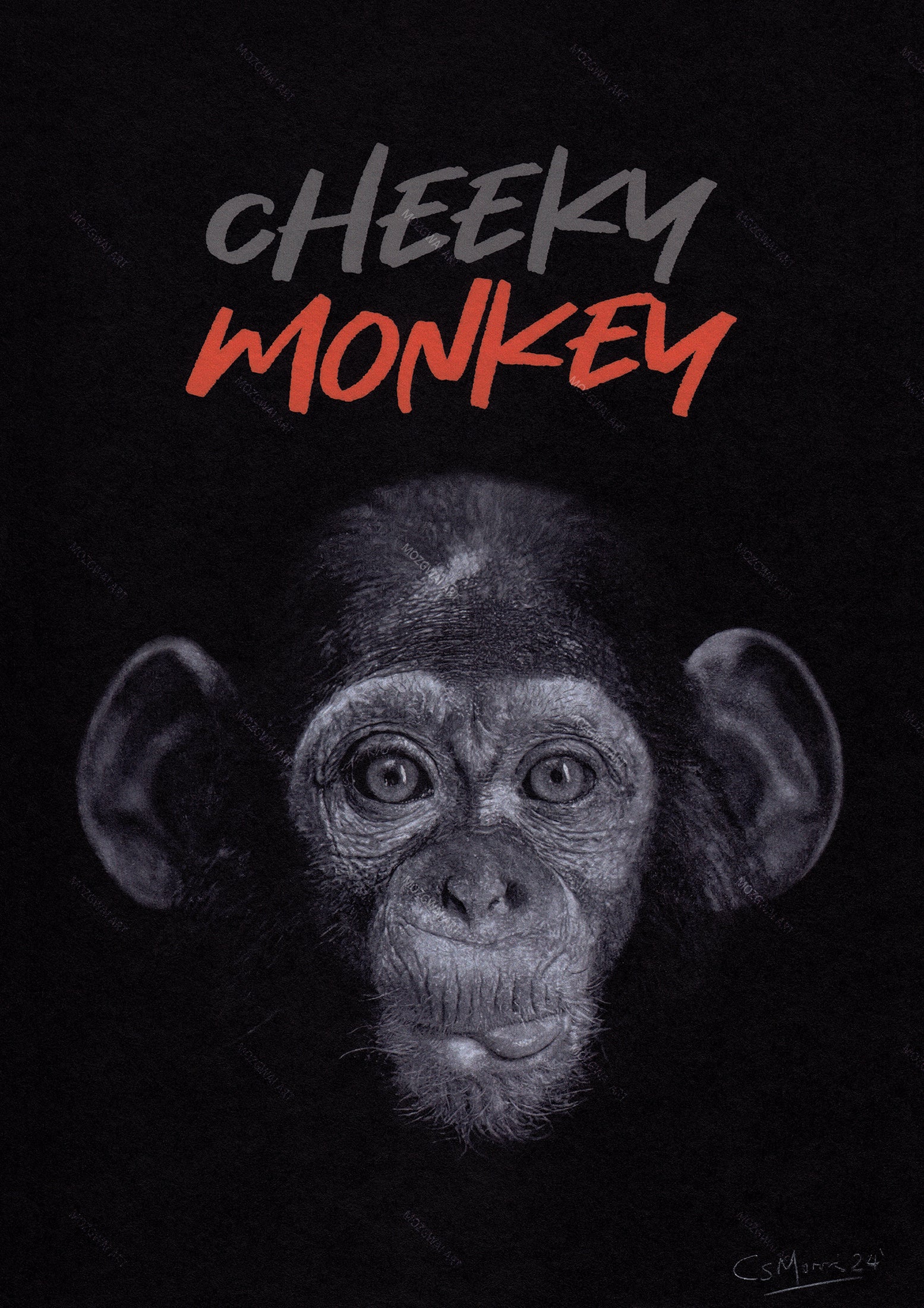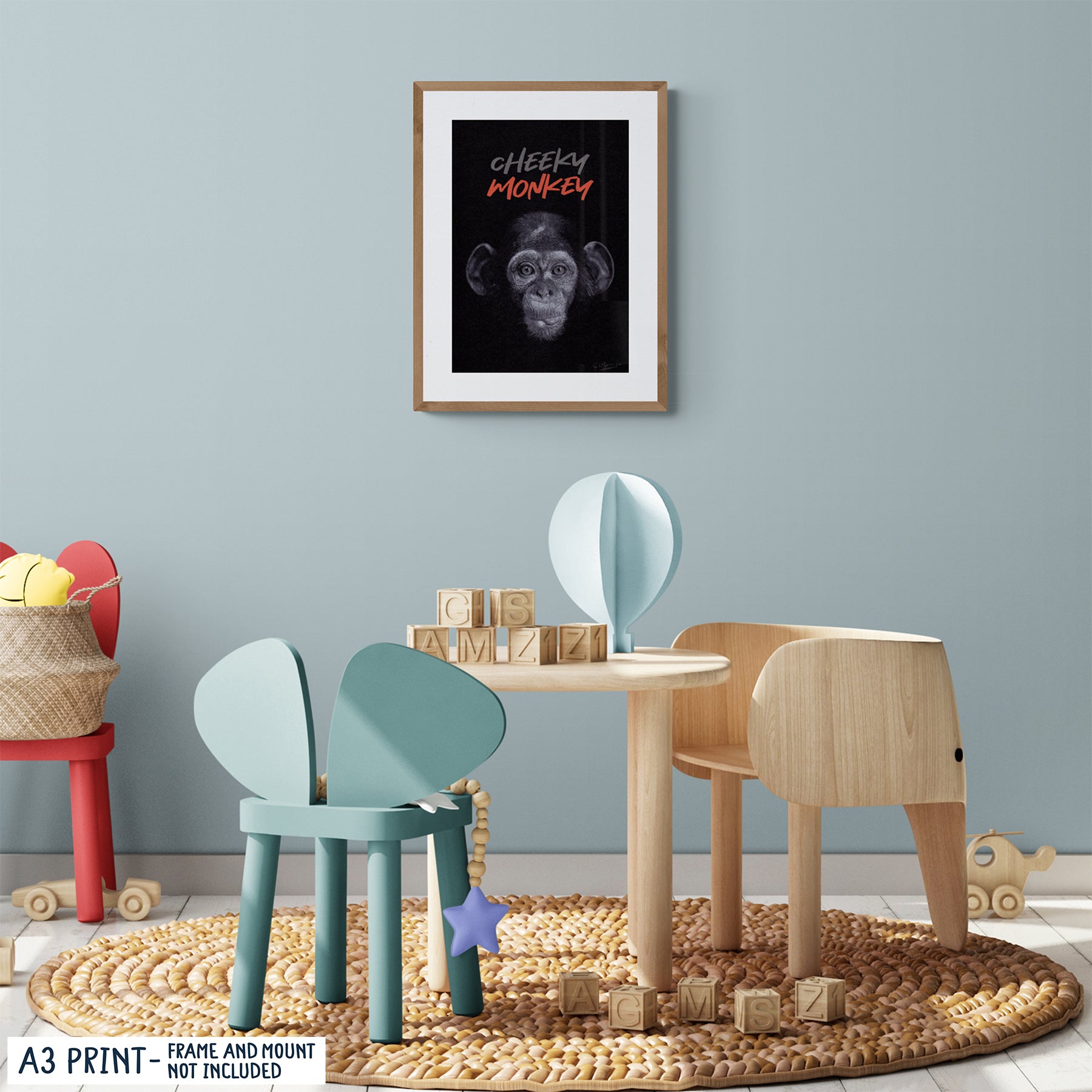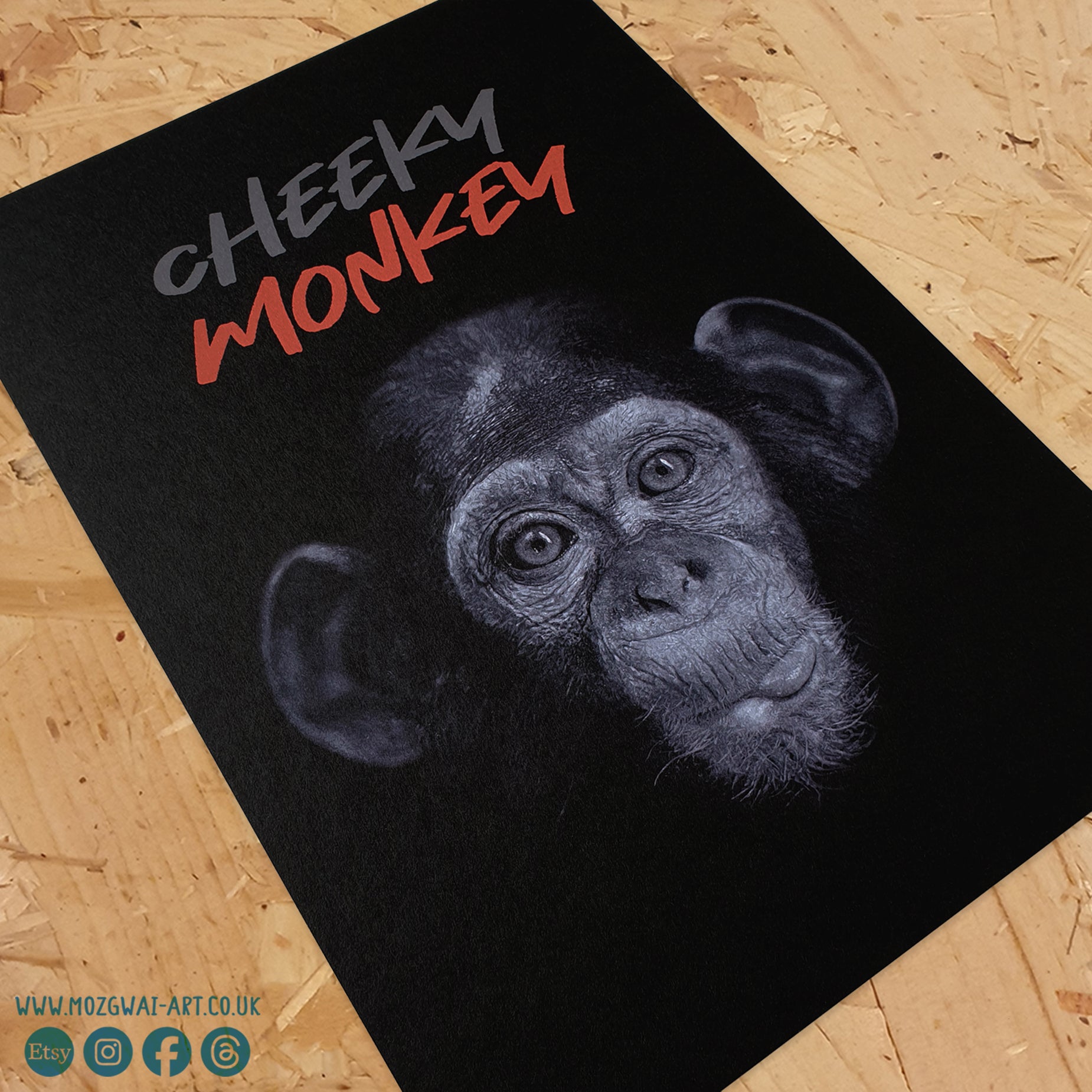 ¡Prepárate para volverte loco con nuestra lámina artística Cheeky Monkey! Este retrato realista es perfecto para cualquier guardería y agregará un toque divertido al espacio de su pequeño. ¡No pierdas el tiempo, consigue el tuyo hoy! Originalmente dibujado a mano con lápices de colores Faber-Castell Polychromos.