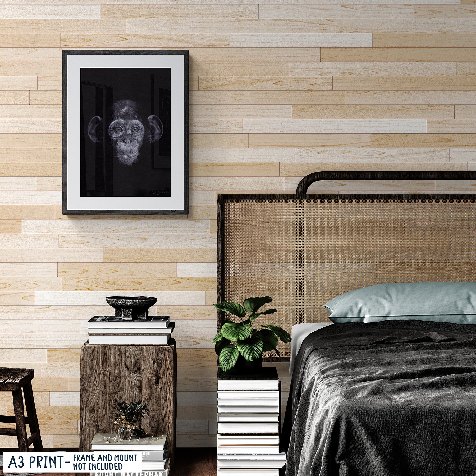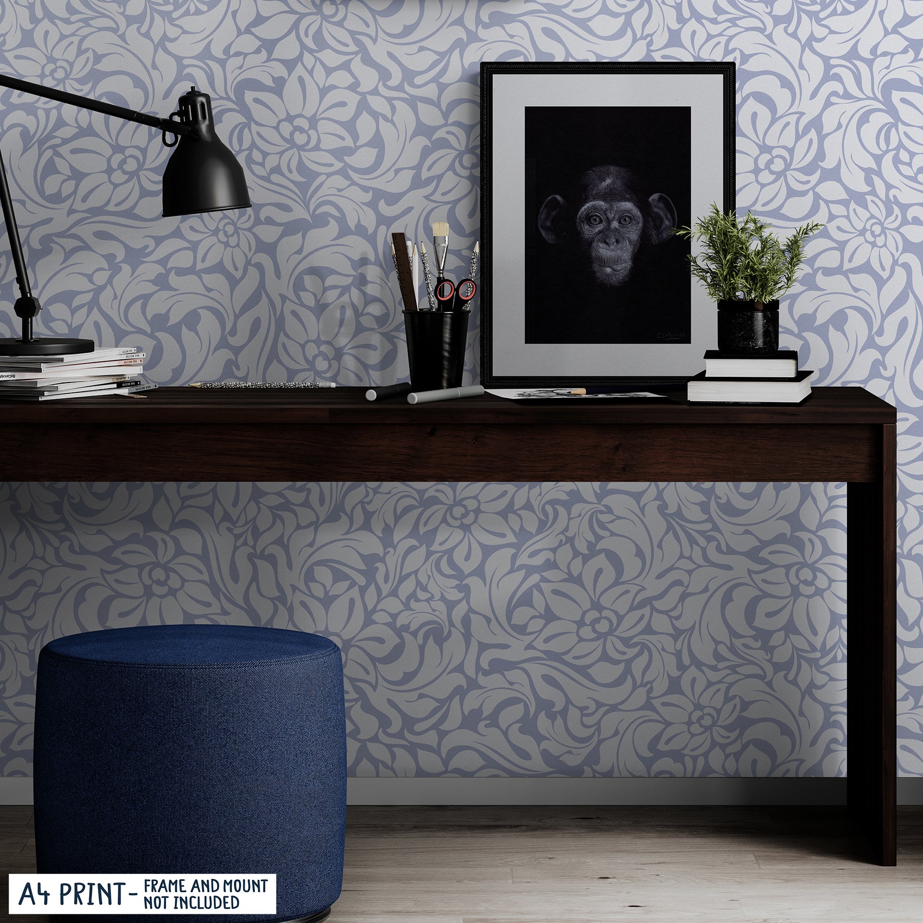 Con una expresión juguetona, nuestro retrato realista de Mono añade un toque atrevido a cualquier espacio. ¡Repleto de detalles intrincados, este estampado da vida a cualquier habitación! Originalmente dibujado a mano con lápices de colores Faber Castell Polychromos.