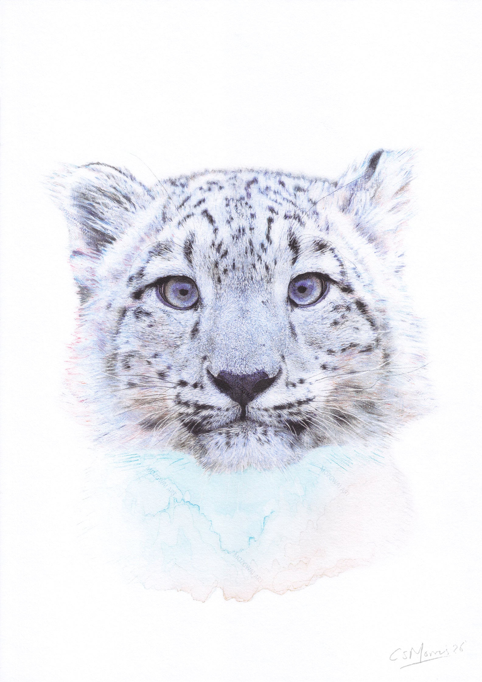 Dale un toque salvaje a tu hogar con nuestro retrato artístico de Snow Leopard. Esta pieza realista e impresionante captura la majestuosidad del esquivo Leopardo de las Nieves. Perfecto para los amantes de los animales y añadiendo un toque único a cualquier espacio. Originalmente dibujado a mano con lápices de colores Faber-Castell Polychromos y acabado con delicada acuarela.